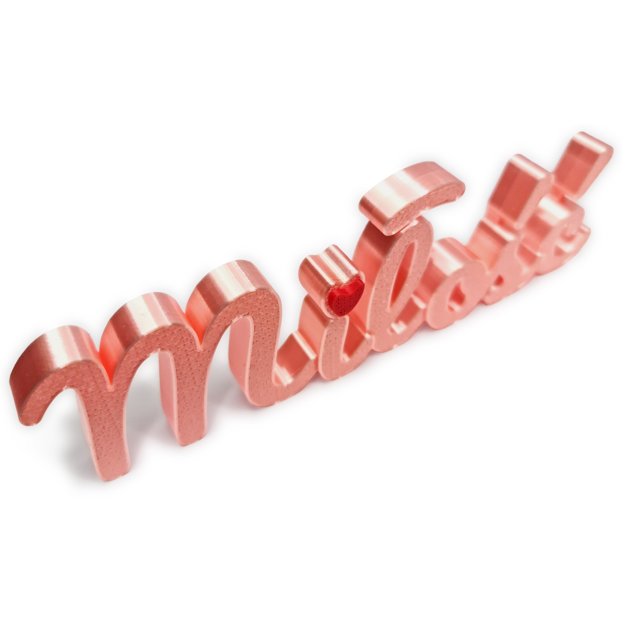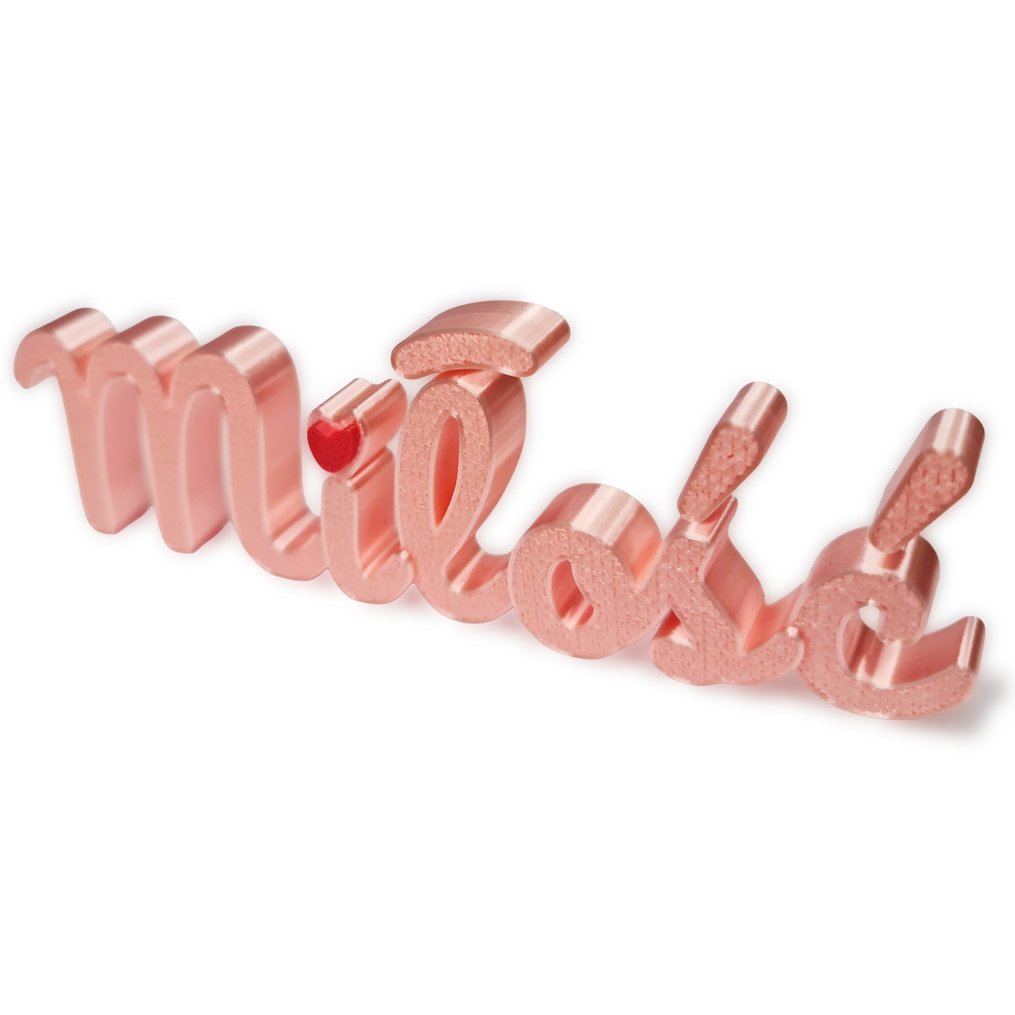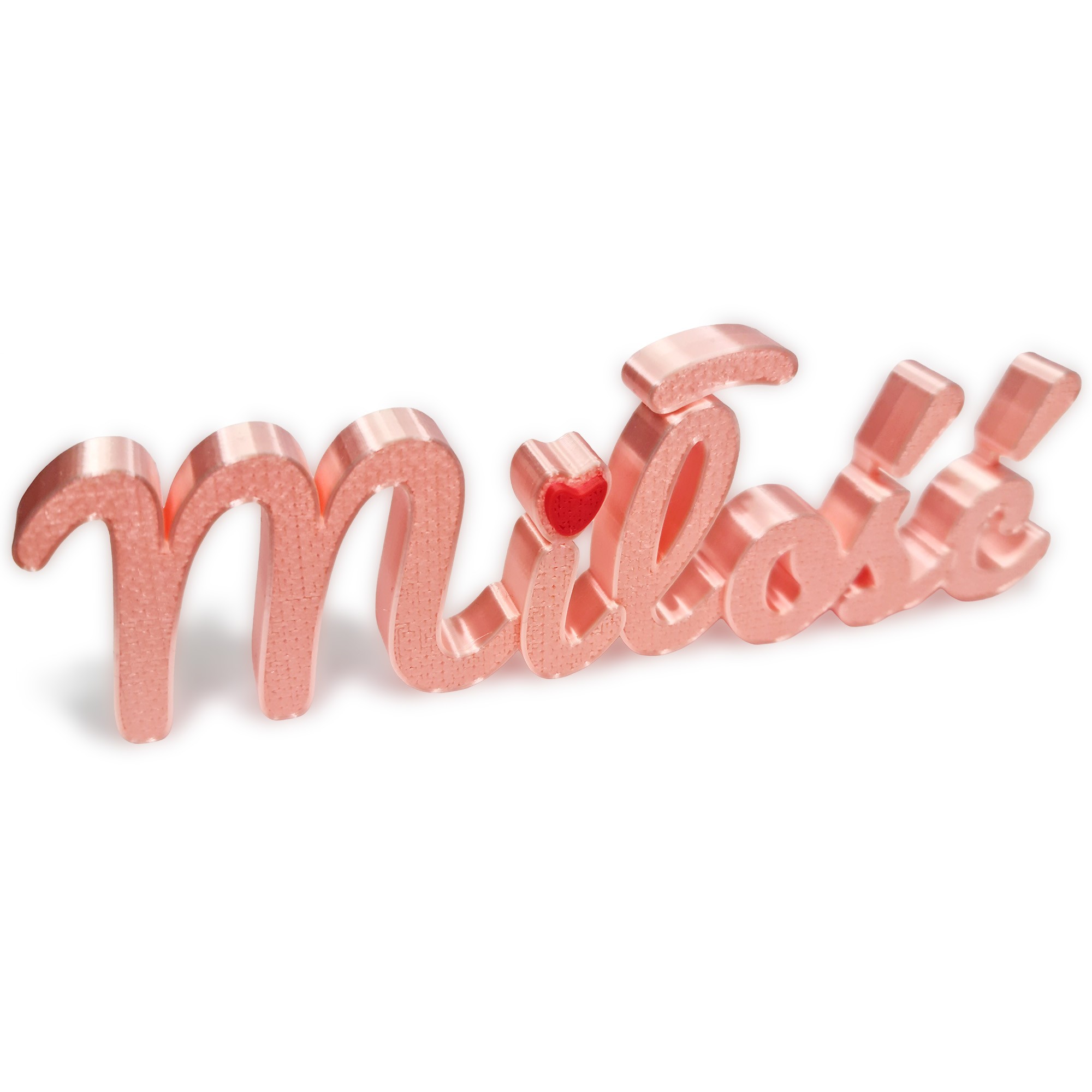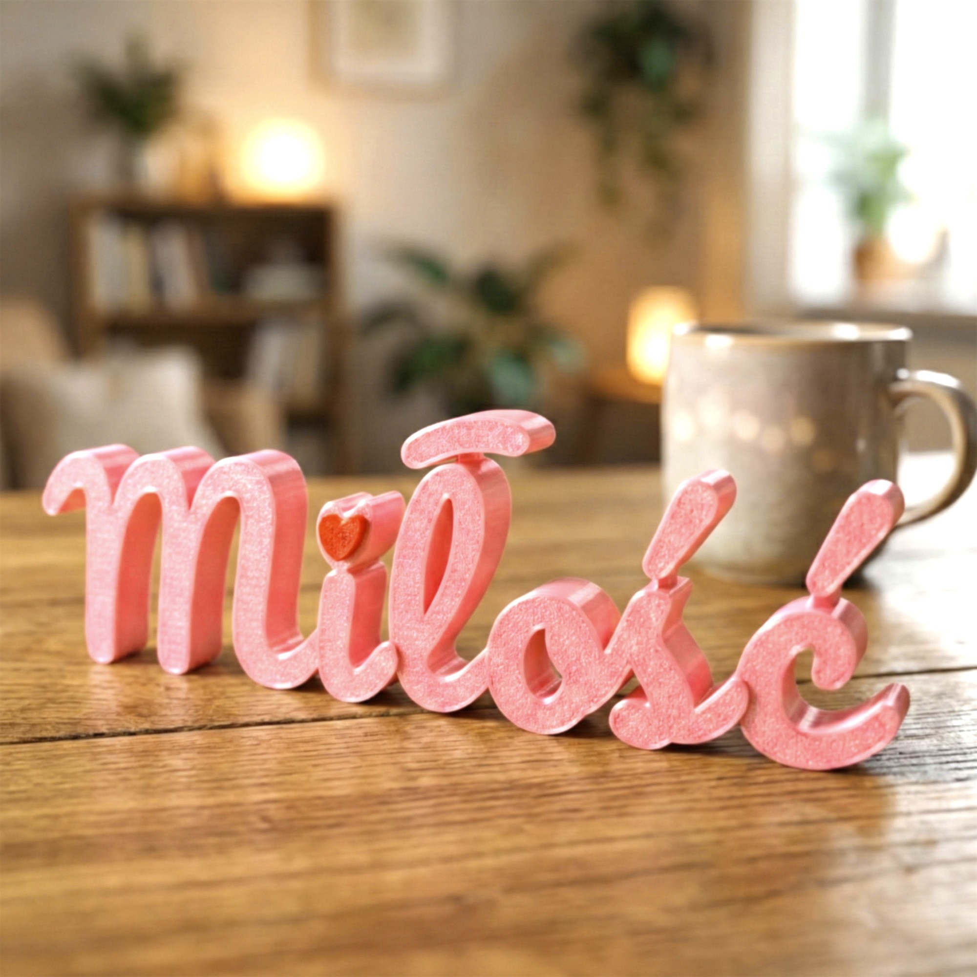 Napis „Miłość / Milosc” to autorska dekoracja wykonana w technologii druku 3D - lekka, estetyczna i pełna emocji. Idealna na półkę, biurko, komodę czy jako detal do wspólnego zdjęcia zakochanych 📸💑