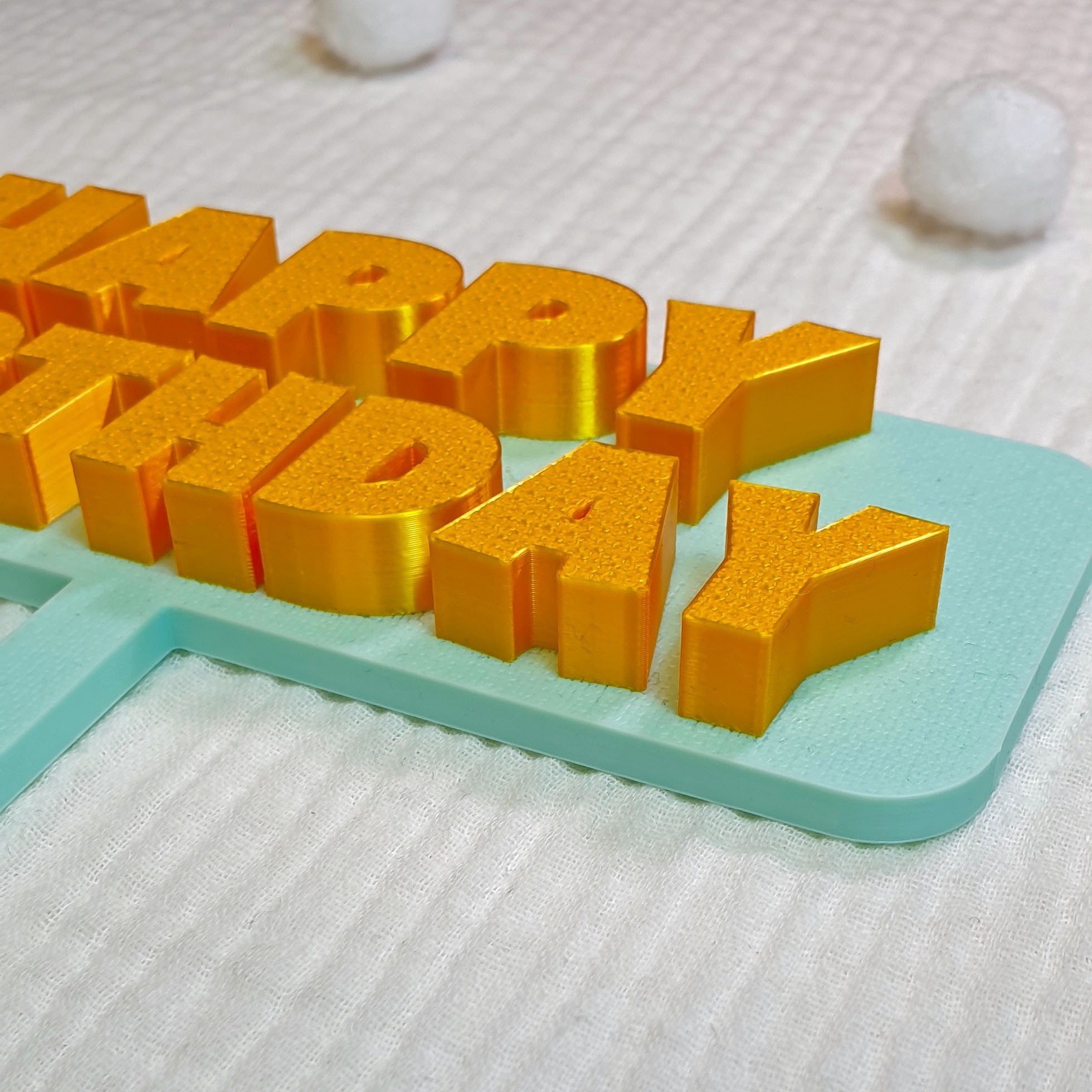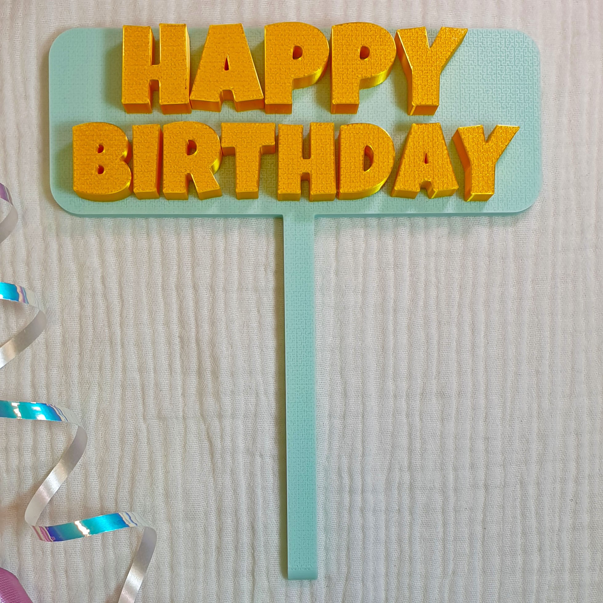 Dodaj nowoczesny i elegancki akcent do każdego przyjęcia dzięki topperowi „Happy Birthday” wykonanym w technologii druku 3D. To lekka, estetyczna ozdoba, która świetnie prezentuje się na torcie oraz na słodkim stole – także na zdjęciach 📸.