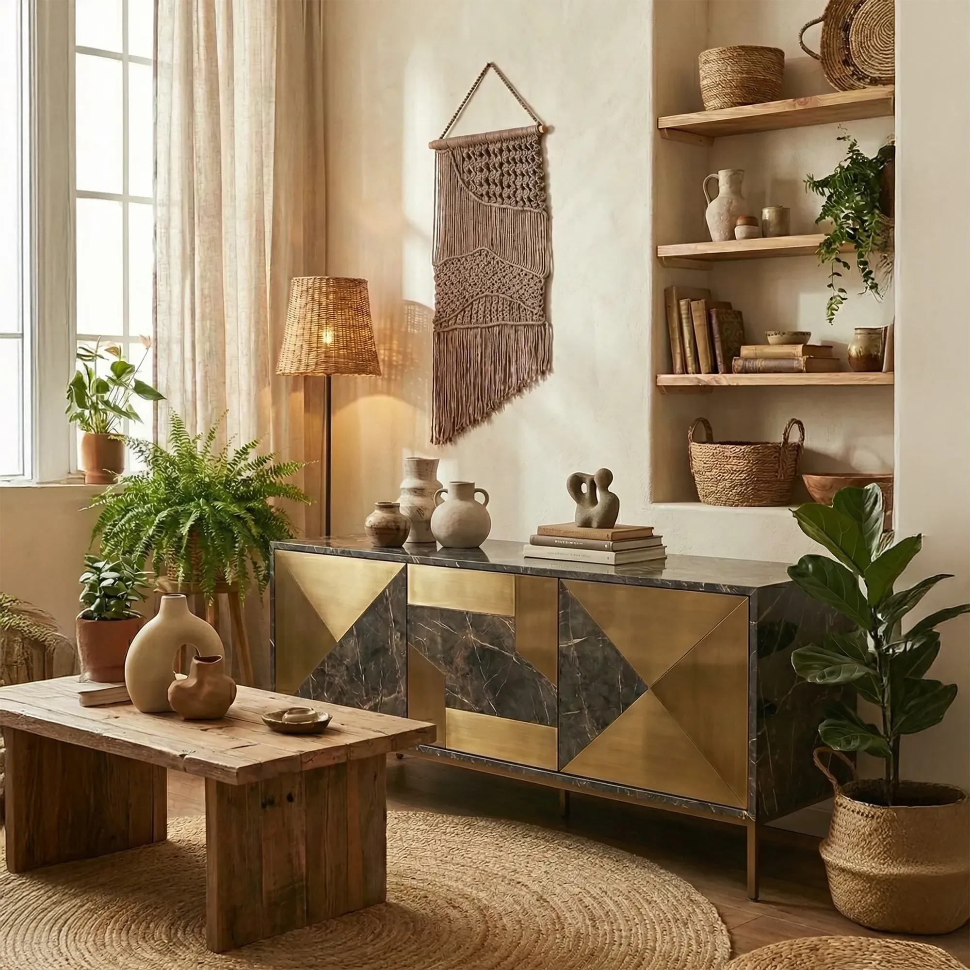 Idealnie pasuje do aranżacji w stylu boho, eko oraz minimalistycznym.