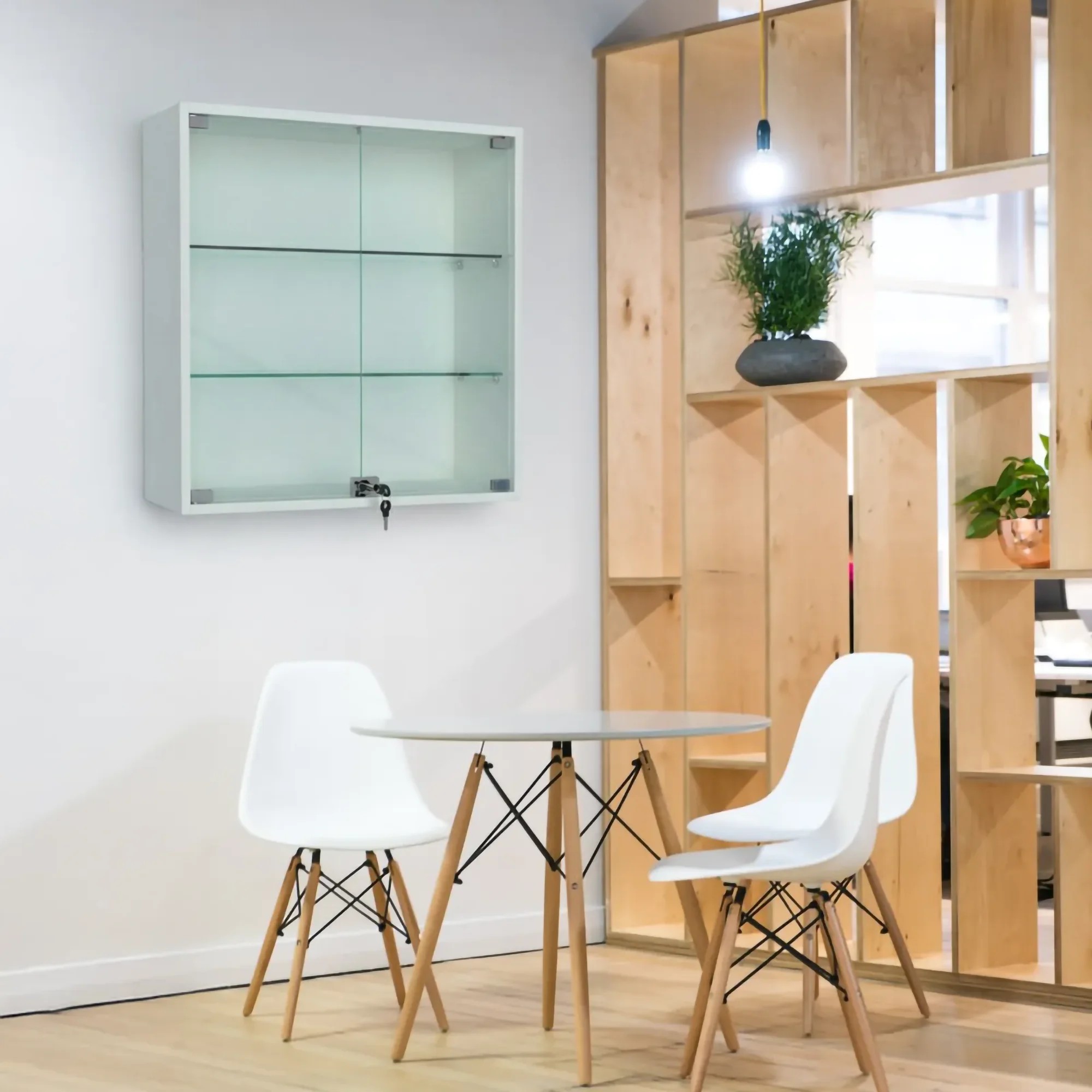 Kompaktowa witryna wisząca o wymiarach 680×680×170 mm wykonana z wysokiej jakości płyty MDF.